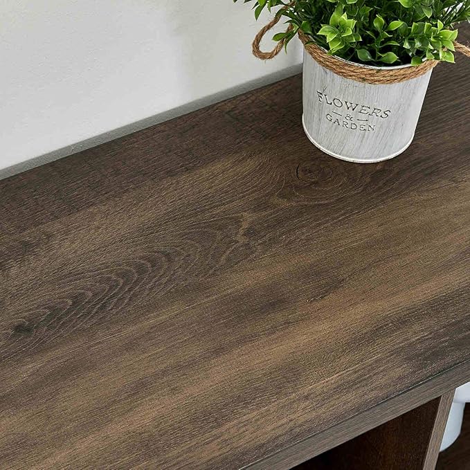 - [Industrial Rustic Design]: Combining warm walnut wood tones with a sleek black metal frame, this organizer shelf exudes industrial charm with a hint of farmhouse warmth. Its clean lines and rustic finish enhance your home’s aesthetic, making it a unique and eye-catching addition to any space