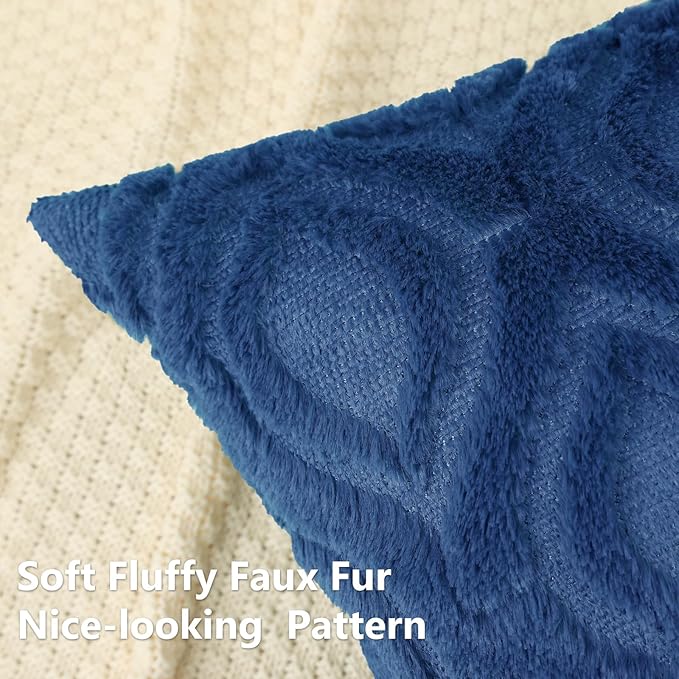 decorUhome Fall Throw Pillow Covers 20x20 Inch Set of 2, Soft Plush Decorative Faux Fur Dark Blue Solid Couch Pillow Covers, Accent Farmhouse Neutral Square Euro Pillow Cases for Sofa Bed Living Room