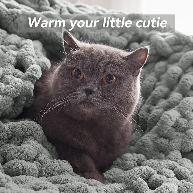 Chunky Knit Throw Blanket, 40''*50'' Knitted Throw Chenille Yarn for Bed Couch, Handmade Light Grey Crochet Big Thick Blanket, Machine Washable Cute Comfy Blanket for Home Decor