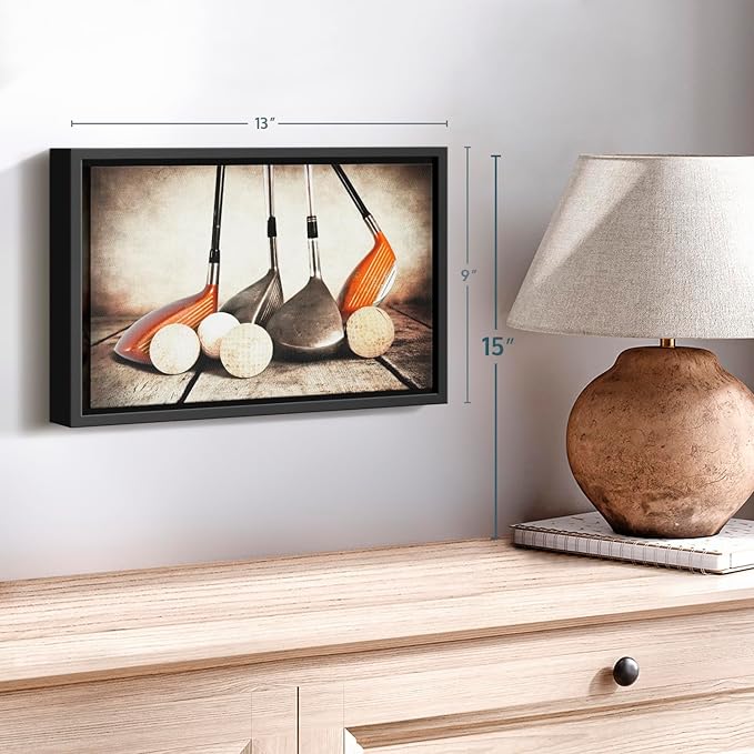 ElephantStock Golf Sets Wall Art - Horizontal Framed Canvas - 1-Piece Mancave Wall Decor - Photography Sports Canvas Print - Yellow and Brown Decor for Wall - 13" X 9"
