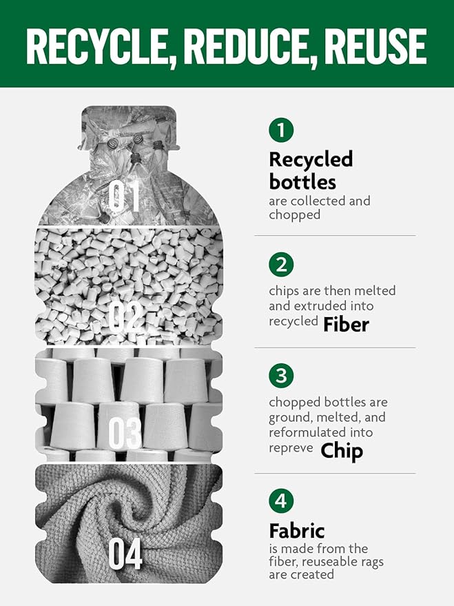 - [Alternative to Paper Towels] Designed for durability, the cloths are washable and reusable up to 50 times. The sturdy 175gsm microfiber will be a highly effective cleaning results
