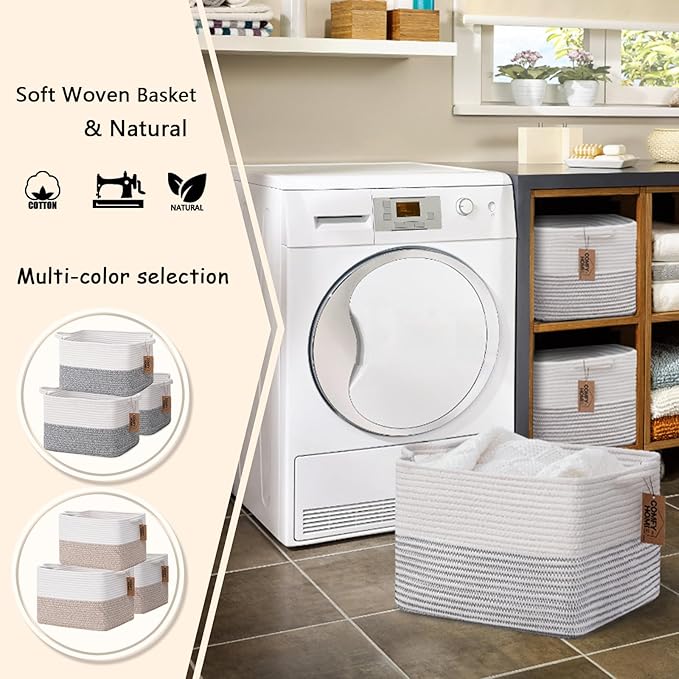 - MEDIUM BASKETS FOR ORGANIZING: 13.5''Lx11''Wx 9.5''H, Cotton rope baskets can be used in baby room, kid’s room, nursery, living room, bathroom, office. And are very ideal for storing books, toys, clothes,towels. It's a great way to store them out of sight