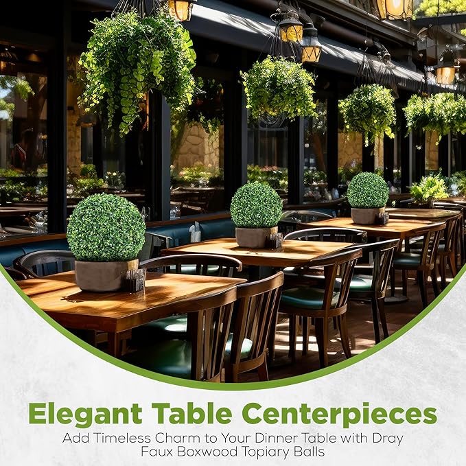 DRAY Premium 16.14" Faux Boxwood Balls – Set of 2 Artificial Topiary Spheres for Outdoor & Indoor Use – Realistic, UV-Resistant, Weatherproof Decorative Greenery – Check Measurements