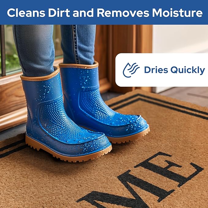 - Versatile - Our Welcome doormat outdoor entrances is not only perfect for patios, but also makes a great welcome mat for outdoor events or camping trips. Its durable construction is perfect for cleaning dirt and debris from shoes, and the all-weather coir fibers dry quickly. Use it to welcome guests to your home, cabin, or RV.