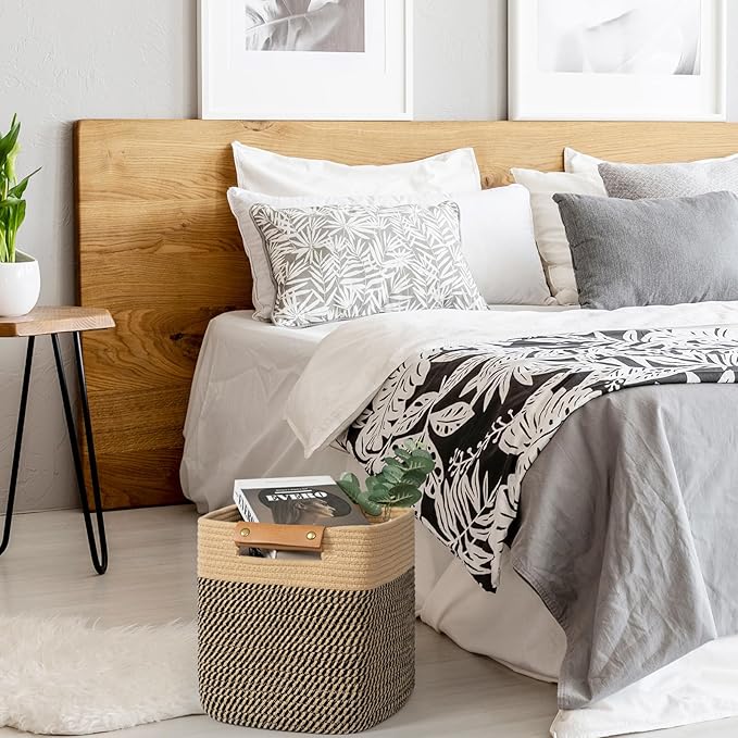 - Modern Charm: The cube storage organizer feature leather handles that provide comfortable grip for easy carrying. Woven baskets are made of 100% cotton to ensure long lasting use. The contrast between the cotton and leather creates a stylish and modern look