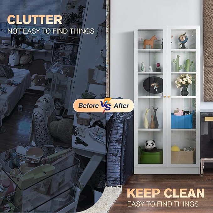 - Storage Cabinets for Multiple Purposes:A nice dust proof display cabinet to store a variety of books, collectibles, dishes, shoes, bags, and more. This steel storage cabinet can be used as a display cabinet for curios, books, artwork in your living room. It can also be used as a glass display cabinet, bookshelf, media cabinet, miscellaneous cabinet in office, bathroom, kitchen etc. With local warehouses in USA, we are able to provide fast deliveries.
