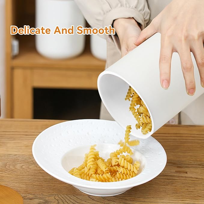 Canister Sets for Kitchen,Ceramic Kitchen Canisters for Countertop with Airtight Wood Lids for Serving Ground Coffee, Tea, Spice, Grains, Sugar, Salt (White Pack of 3 (8.7/27/44 Oz))