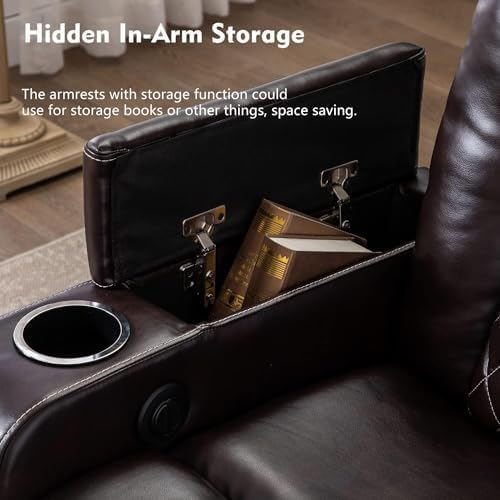 CANMOV Electric Power Recliner Chair Set of 2, Breathable Leather Home Theater Seating with Hidden Arm Storage, Power Recliner Chair for Living Room with USB Ports and Cup Holders,Brown
