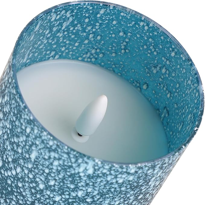 - Ocean Theme Decorative Candles: Blue Flameless Candles, ocean theme LED candles. These glass flameless candles are made of real wax, flickering LED wicks and glass. Surrounding the glass covering is blue sandblasted to give the candle a more layered look