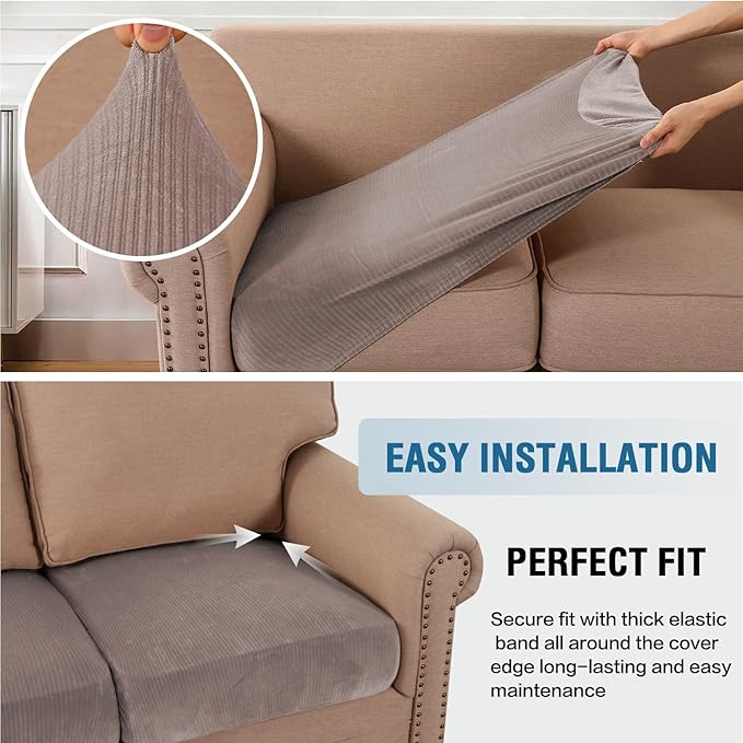 - STAY IN PLACE: Featuring non-skid thick elastic bottom, our cushion slipcover can stay tight with no snag, no wrinkling, shifting or slipping on both leather and cloth sofa. Check the installation guide carefully, it can be finished within 3 minutes by one person. It is very easy to put on and take down. (Installation Instructions Included)