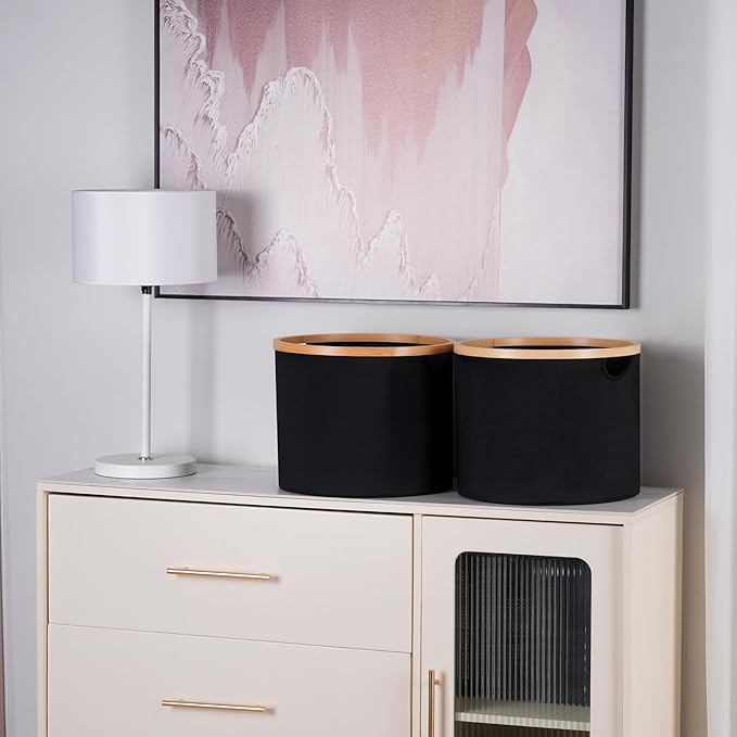efluky Storage Baskets for Organizing, Fabric Storage Bins with Bamboo Handles, Collapsible Storage Baskets for Shelves and Closet,Medium, Black Set of 2