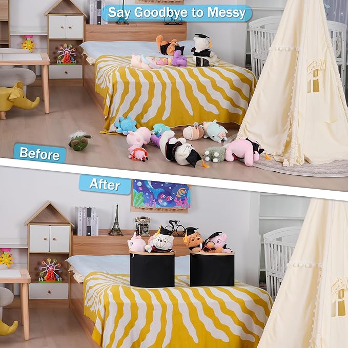 - 【Collapsible Basket Set】When the collapsible storage basket is not in use, it can be easily folded by simply pushing down the support rod. Fabric baskets are easy to clean, simply dust with a soft dry cloth.