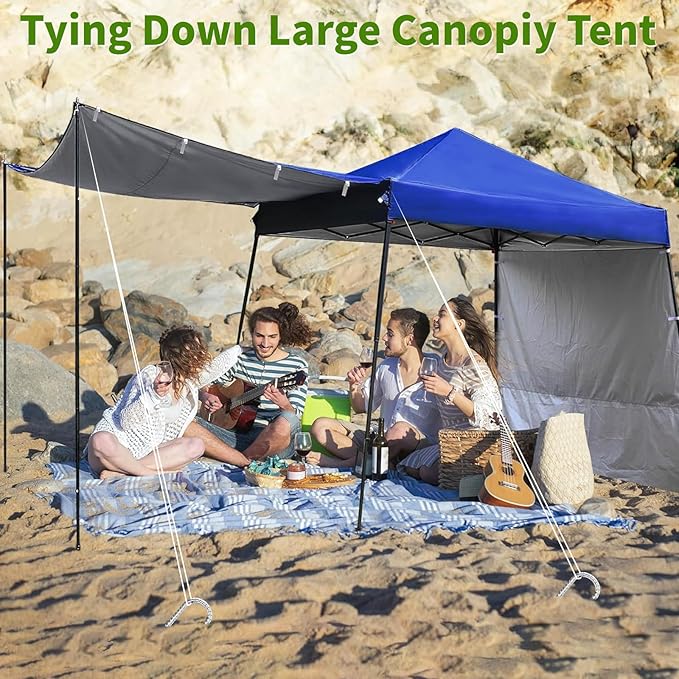 - 【45 Degree Chisel Point End】The heavy duty stakes have a pointed end that makes it easy to go into the ground. The rope is pretty flush with the ground making it more secure and there is less chance of someone tripping over the stake.