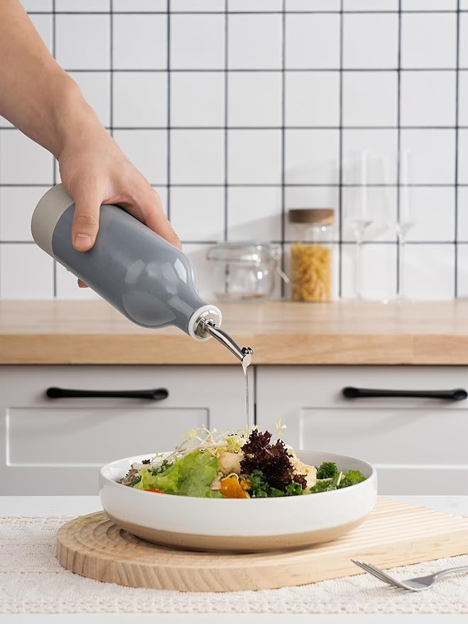 - KEEPS OIL FRESH - Exposure to light can cause olive oil to go rancid. This opaque olive oil dispenser bottle ceramic protects your olive oil or vinegar from harmful UV rays, keeping it fresh longer