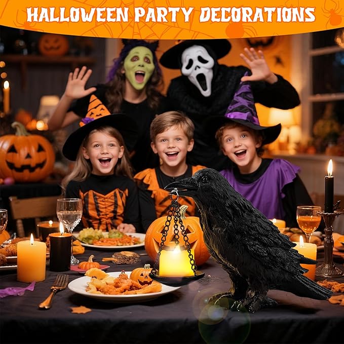 - Versatile Candle Holder: The black plate held by the crow lamp can be used as a tealight or fake candle holder, adding a flickering glow to your Halloween festivities. Perfect for creating a spooky atmosphere in any setting, from haunted houses to themed parties.