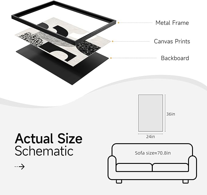 - [Framed Wall Art]: A large framed black and white abstract geometric canvas wall art, size is 24x36 inches, each painting with a sturdy, rust-resistant frame