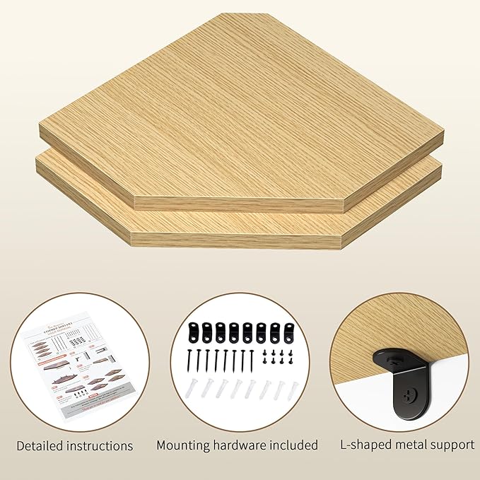 - Easy to Mount: The package comes with user-friendly instructions and all the necessary mounting hardware. Just place the corner wall shelf level in your desired location and secure it in place using the hidden bracket connectors provided, followed by screws