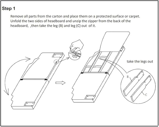 - Easy Assemble: Tools included for easy assembly . Remind: Legs are stored in the back of headboard,unzip to find them.