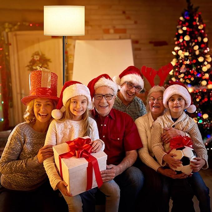 Ambimall Floor Lamps for Living Room with 3 Color Temperatures Bulb & Pull Chain Switch, 60" Modern Standing Floor Lamp for Bedroom Kids Room Study Room(Dark Beige Shade & Black Pole)