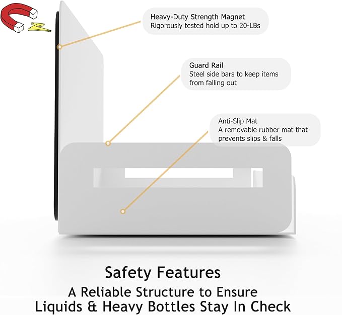 - HASSLE-FREE INSTALLATION - Enjoy the simplicity of our magnetic fridge shelf, which requires no drilling or assembly. Effortlessly attach it to any metal surface in seconds and transform your space instantly