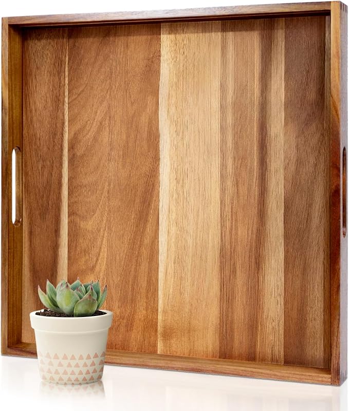 - Easy to Care For: Maintain the beauty of your Acacia wood tray with minimal effort. Simply wipe with a damp cloth to clean. For added longevity, occasionally treat the wood with a food-safe mineral oil to keep it looking pristine.