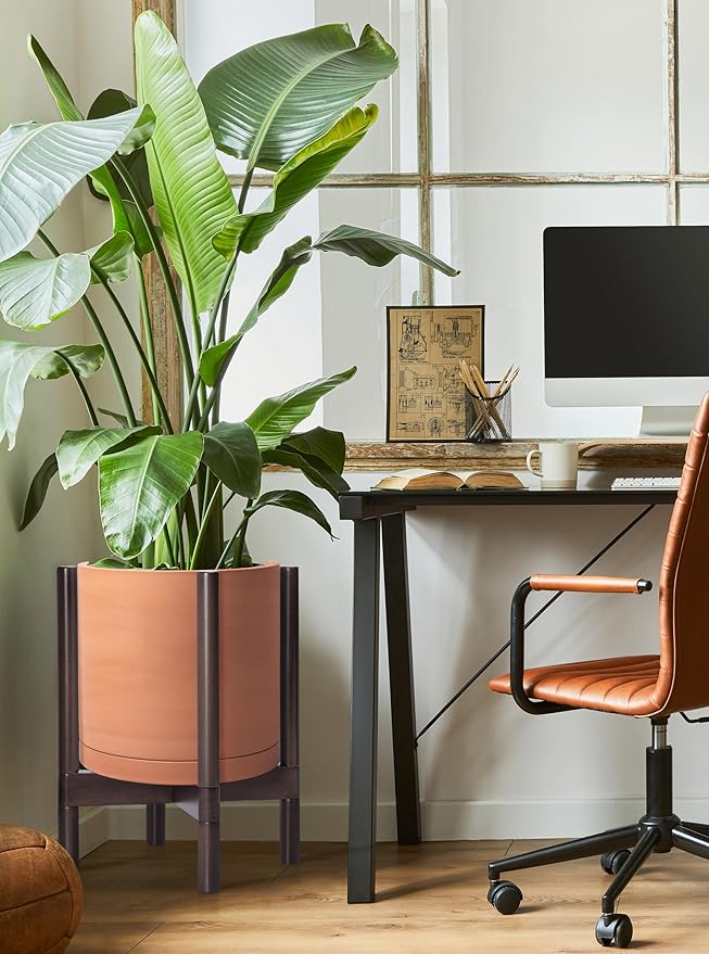 - A Complete Set: Mid-century terracotta planter, combined with a sculptural, solid wood stand that match perfectly together and looks great in anywhere.