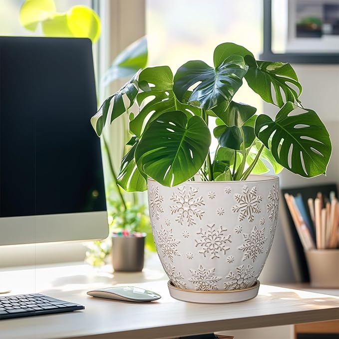 - Plant Pot with Drainage Hole and Saucer: This ceramic flower pot with drainage holes allow for easy plant drainage, beneficial for plant respirationthe, ceramic tray to collect excess water, and the leak-proof mesh reduce soil erosion
