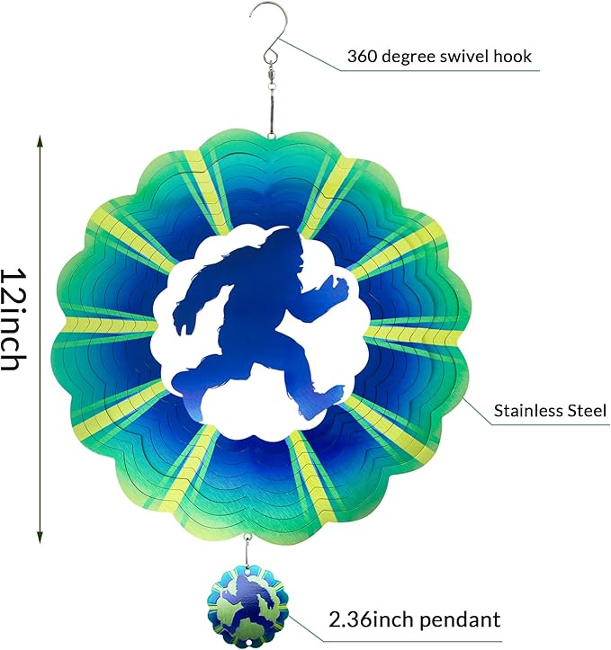 - 【Product introduction】: This 3D wind spinner is made of 12 inches and made of high-quality stainless steel. which adopts cutting technology and PUV printing to achieve a vivid bigfoot shape.