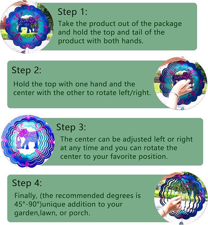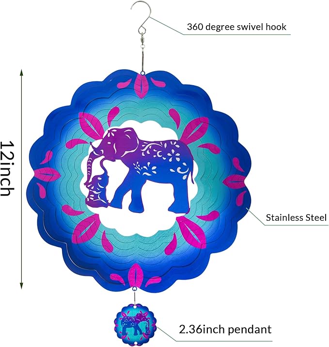 - 【Product introduction】: This 3D wind spinner is made of 12 inches and made of high-quality stainless steel. which adopts cutting technology and PUV printing to achieve a vivid elephant shape.