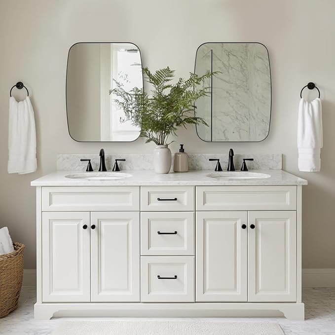 - True Reflection: This vanity bathroom mirror features a 4mm HD glass surface, delivering flawless, distortion-free reflections. Its scratch-resistant and shatterproof design ensures durability, while the easy-to-clean surface maintains a perfect shine with minimal effort