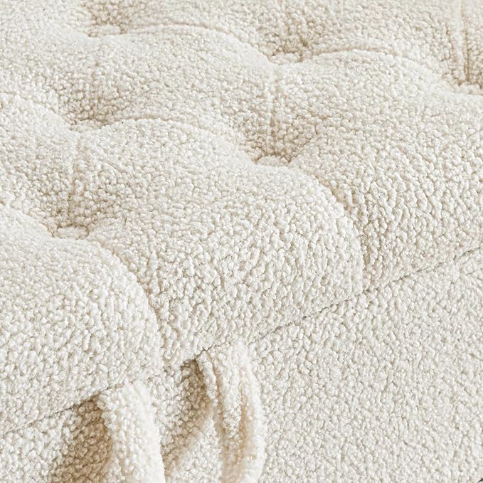 - ·Premium Material:The tufted bench cover is made of high quality sherpa, resistant to fading, static, and easy to clean. The upholstery features native sponge, offering a soft and comfortable feel that you will adore. It has excellent rebound speed and long-lasting support. The window seat is with a convenient weight for easy moving and placement, this piece can serve as a end of bed bench, a closet bench, an entryway shoe-changing ottoman, or a sofa footrest bench.