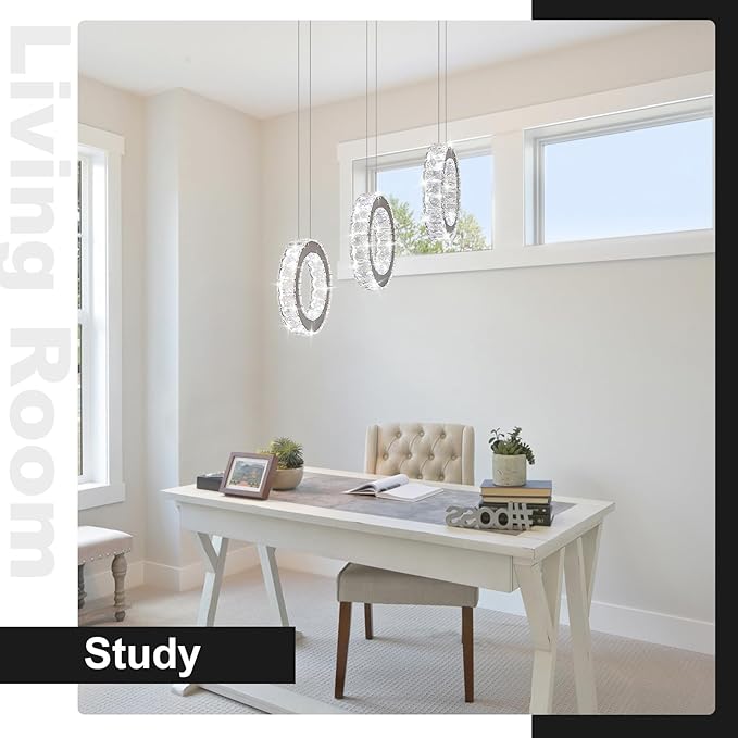 - 【Modern LED Crystal Chandelier】Revitalize your living space with the exquisite Buccleuch Modern LED Crystal Chandelier. Boasting a sleek 3-ring design and shimmering K9 crystals, this chandeliers brings a contemporary touch of sophistication to any room. The elegant simplicity and chic charm make it a perfect choice for enhancing dining rooms, kitchen islands, and living rooms. Illuminate your home with this stunning modern crystal light fixture and elevate the ambiance with style!