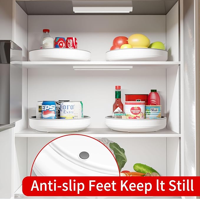 - Package Include: 2 Pack 10 Inch lazy susan organizer. Easily rotating plastic lazy susan turntable for pantry organizers and storage includes non-skid beaded surfaces with anti-slip base feet