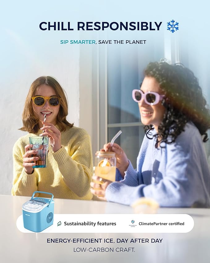 - Portable Design & Bullet Ice: Our ice maker comes with a sturdy handle, weighs only 13.89lbs and with compact size 11.57(L)x11.42(W)x8.74(H)in. Those features make ice maker easy to carry and perform well on any occasions like Kitchen/Home/Camping/RV/Party/Dorm. Also, the newly designed countertop ice maker produce the most popular bullet-shaped smooth ice cubes, which won't stick together easily or hurt your hands or mouth even are excellent for cold drinks, iced coffee or chew as snacks