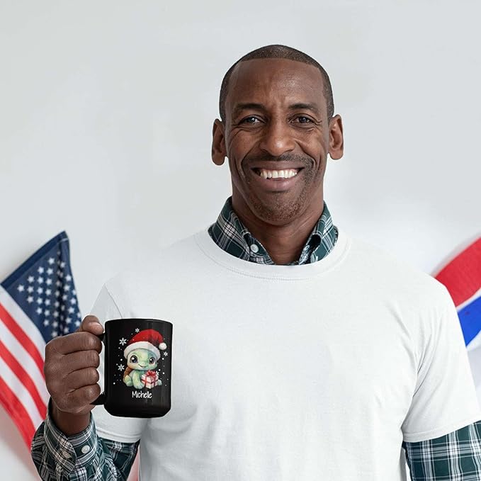 - š UNIQUE DESIGN MUG: Brighten the holidays with this "Coffee Mug With Xmas Turtle Design" featuring an adorable turtle in a Santa hat holding a gift. Click "Customize Now" to add a name and create a heartwarming holiday gift for turtle lovers. This black ceramic mug is great for cozying up with your favorite festive beverages.