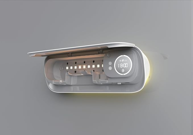 - 【One-Touch Fingerprint Start】:Simply press the fingerprint sensor on the screen to begin cleaning instantly. Each cycle runs for 5 minutes, leaving your toothbrush fresh and ready for use.