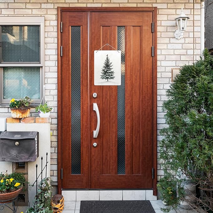 DUXMNAMG Christmas Winter Tree Bird Hanging Wooden Signs 10x8, Christmas Wall Decor, Vintage Home Room Office Hanging Wall Decor