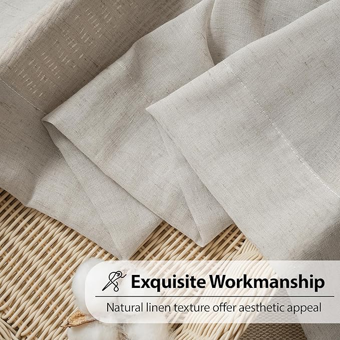 - Linen Blend Sheer Curtains: Add soft texture and a classic look to your home with FMFUNCTEX flax linen curtains. Package includes 2 panels 52 inch wide by 63 inches long each, 104 by 63 combined. With a soft, these drapes bring both casual warmth and a refined style to the room