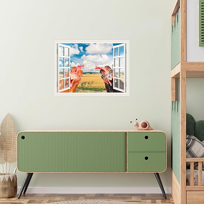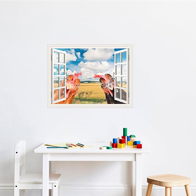 Funny Chicken Wall Stickers Peel and Stick - 2 Hens Head Looking Inside from Window - Cute Chicken Wall Decals Removable - Chicken Lover Gifts Wall Decor for Bedroom Farmhouse Kitchen Dorm