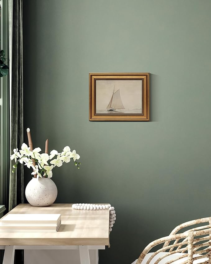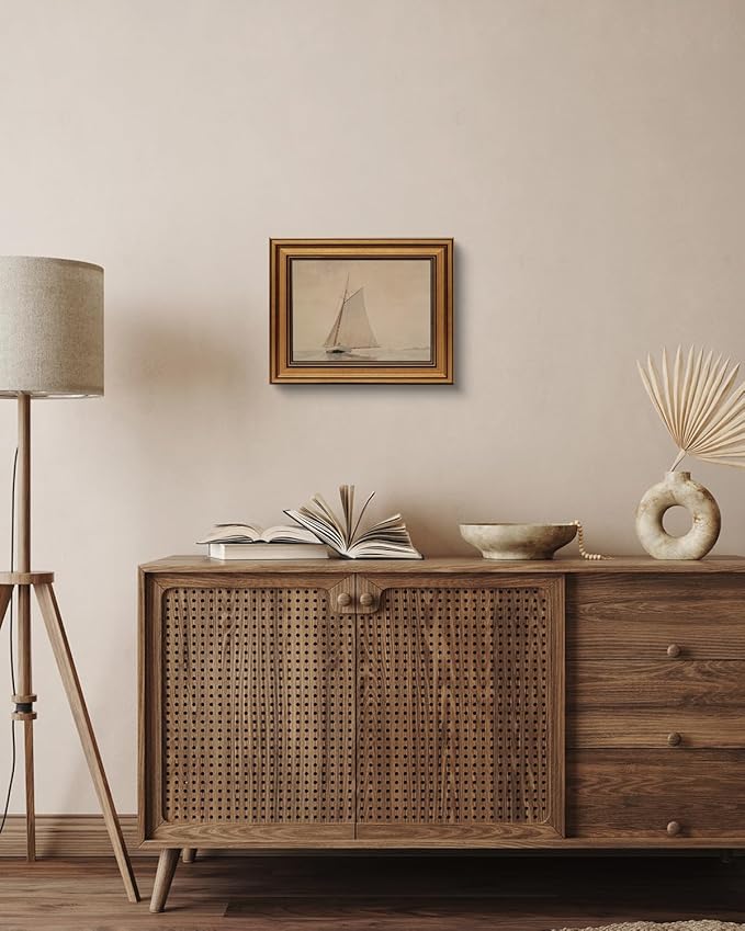 Gold Framed Vintage Wall Art for Living Room, Seaview Painting Prints Shelf Decor for Kitchen, Aesthetic Bedroom Wall Art, Christmas Gifts for Friends or Family (White Sailboat - 8"x10")
