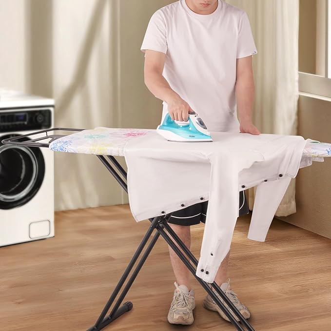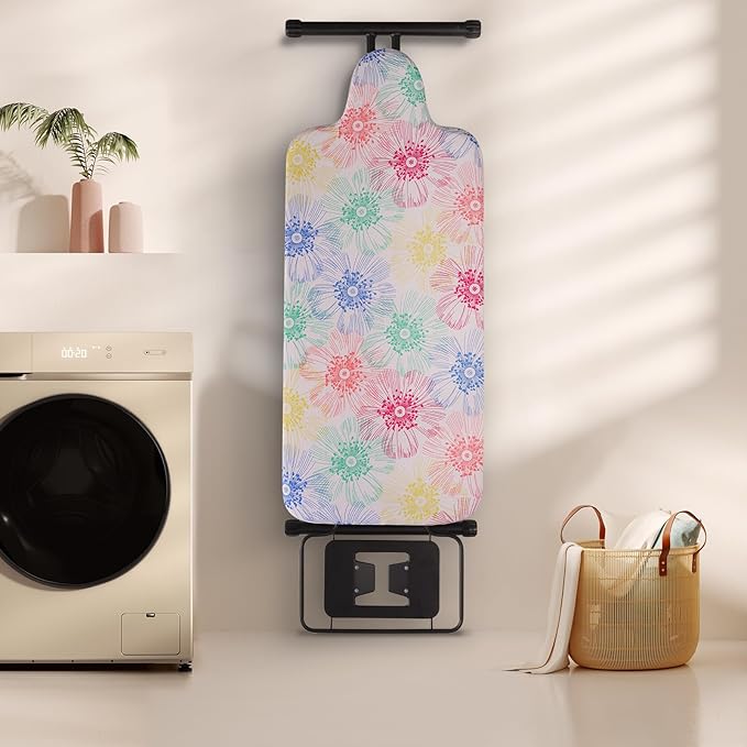 - This replacement extra-large ironing board cover features a charming floral garden design with blooming flowers, bringing a fresh and vibrant touch to your ironing space.