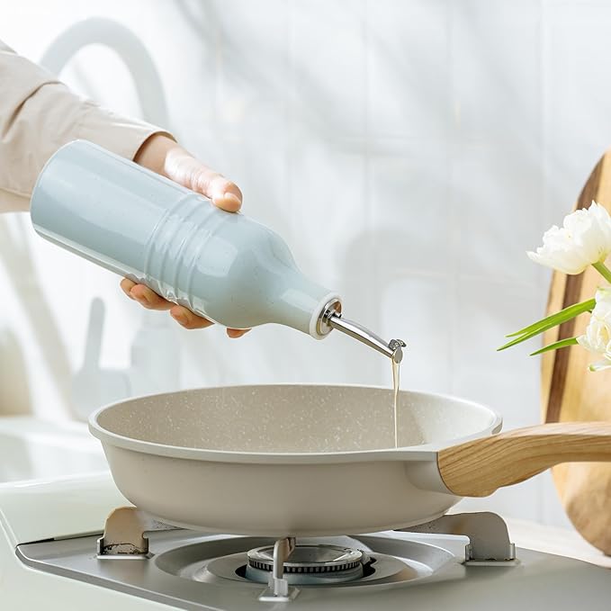 famiware Jupiter 16oz Ceramic Olive Oil Dispenser Bottle, 1 Piece Oil Dispenser for Kitchen with Stainless Steel Pourers, Suitable for Storage Vinegar, Soy Sauce, Coffee Syrup, Light Blue