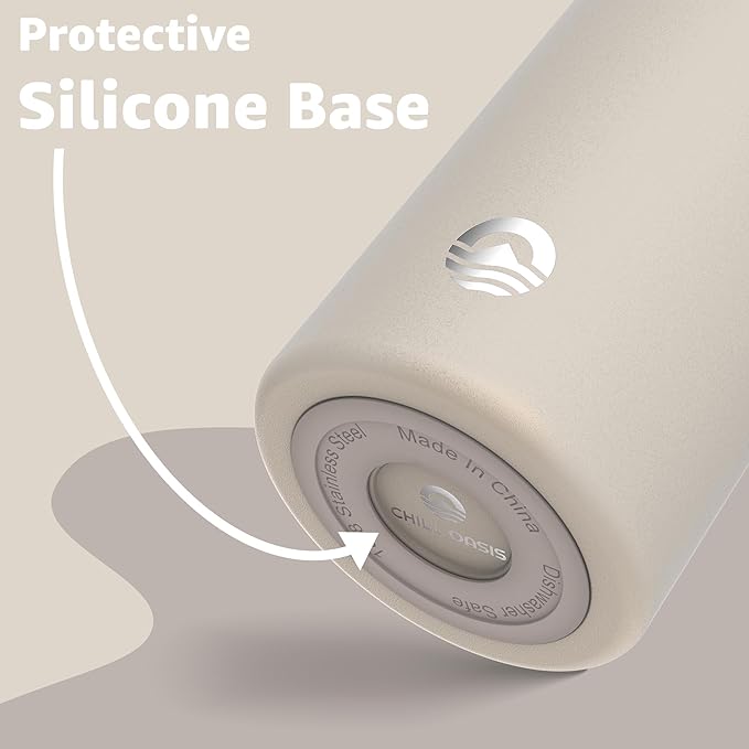 Chill Oasis Water Bottle | Compatible With Popular Flavor Cartridges | BPA Free, Leak Proof, Double-Walled Vacuum Insulated Stainless Steel, and Dishwasher Safe | Cold for 24 Hours (Beige, 22oz)