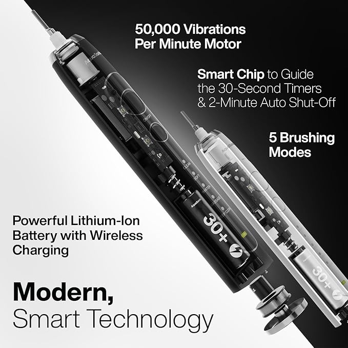 - ADA Accepted Toothbrushes with Powerful Technology: Duo Series PRO is the next generation of the customer-favorite Duo Series, now with more advanced technology. Its powerful 50,000 vibrations per minute motor with smart timers and 5 brushing modes—including Clean, Soft, Whiten, Massage, and Deep Clean—provide a customized oral care experience for healthier teeth and gums.
