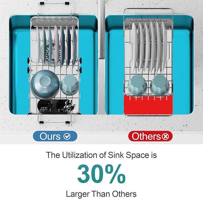 - Rustproof Stainless Steel Design: Crafted from premium stainless steel that's 30% thicker than most, this dish rack is sturdy, durable, and 100% rustproof—perfect for daily use in humid kitchen environments. Enjoy worry-free drying, knowing your dish rack will stay clean and corrosion-free for years.