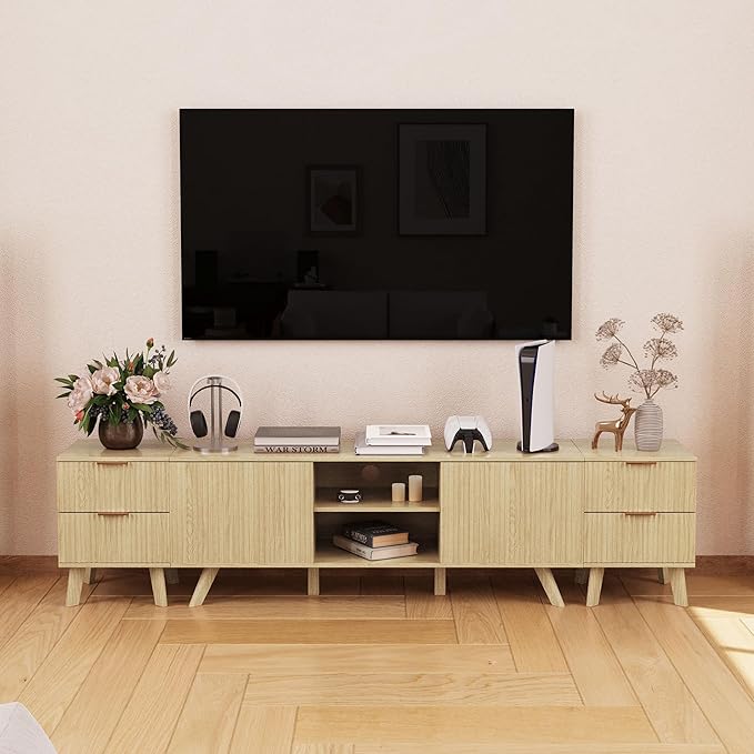 Fluted Nightstand, Mid Century Modern 2 Drawer Bedside Table for Bedroom, Small Dresser Night Stand Side End Table with Wood Fluted Drawer Storage for Bedroom Closet(Natural)