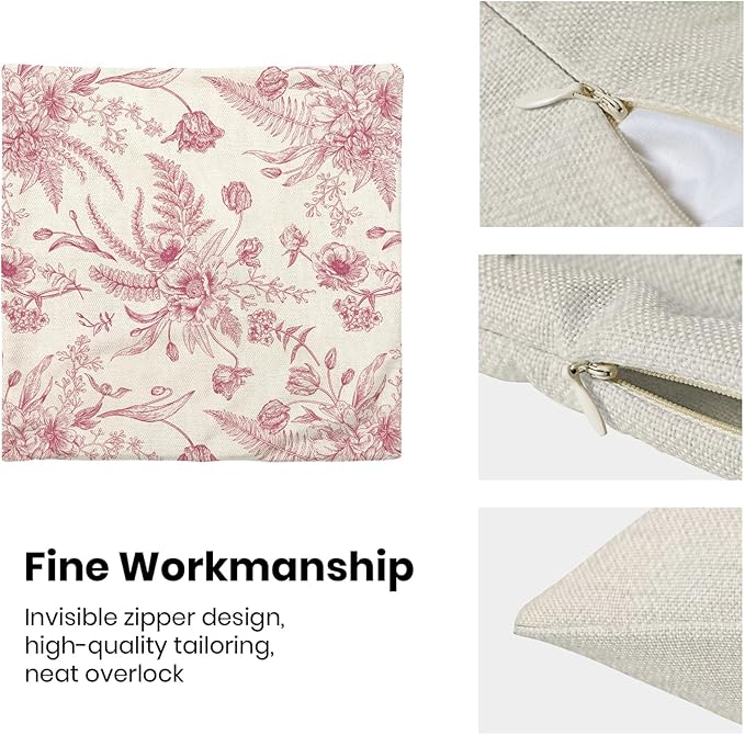- 【Spring Pillow Covers】 Our Chinoiserie floral throw pillow covers 18x18 inch are made of excellent breathable polyester cotton fabric. The pink and White floral decorative pillow covers is sturdy, soft and skin-friendly. The plant outdoor pillow covers adopt exquisite edging technology and four sides of our floral pillow covers are sewn firmly, which is not easy to open the line.