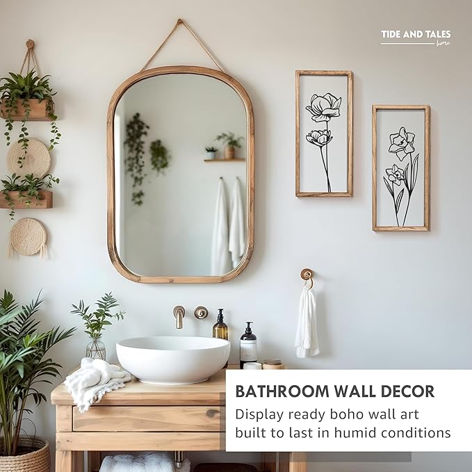 - Durable, High-Quality Wooden Frames – Made from premium wood, these boho aesthetic minimalist wall art are sturdy and built to last, ensuring long-term enjoyment without bending or warping, even in humid bathrooms.
