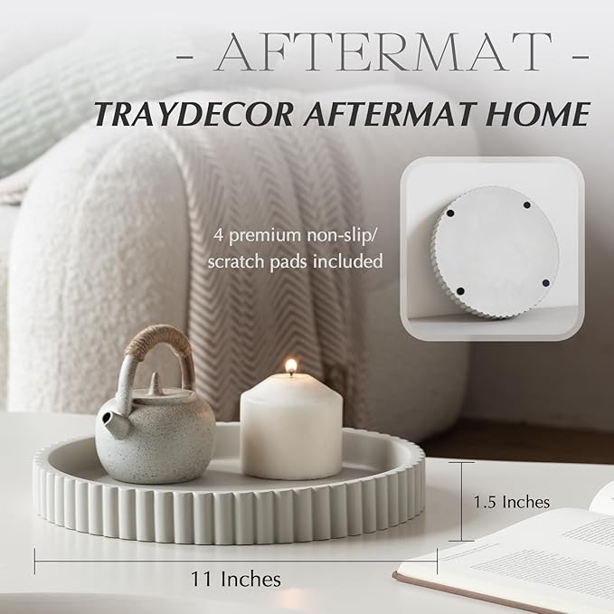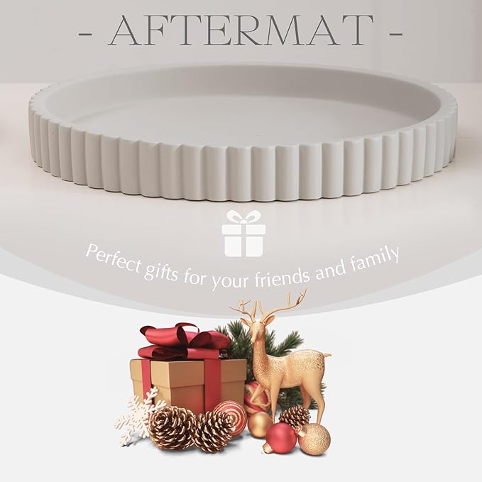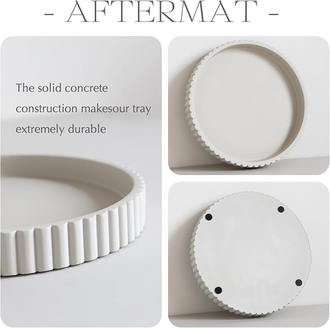 - Timeless Aesthetic: Inspired by clean Scandinavian design elements, it's a neat little solution to keep everything in check. The grooved concrete bestows upon the AFTERMAT tray a sense of modern elegance, harmonizing exquisitely with understated home décors.