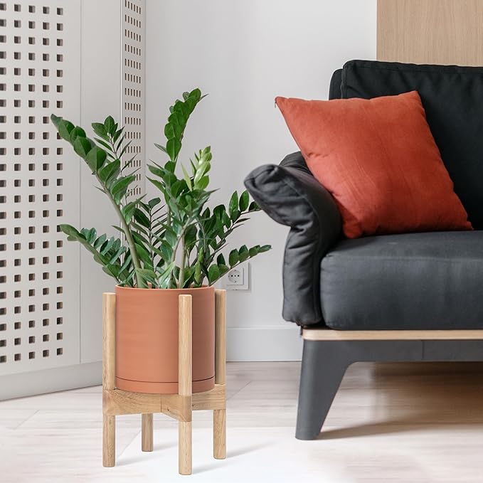 - A Complete Set: Mid-century terracotta planter, combined with a natural color, sculptural, solid wood stand that match perfectly together and looks great in anywhere.